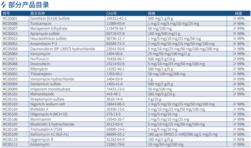 本界面只顯示部分產(chǎn)品信息,若想獲取更多小分子系列產(chǎn)品信息,請聯(lián)系我們銷售或致電技術(shù)支持熱線:400-666-3332
