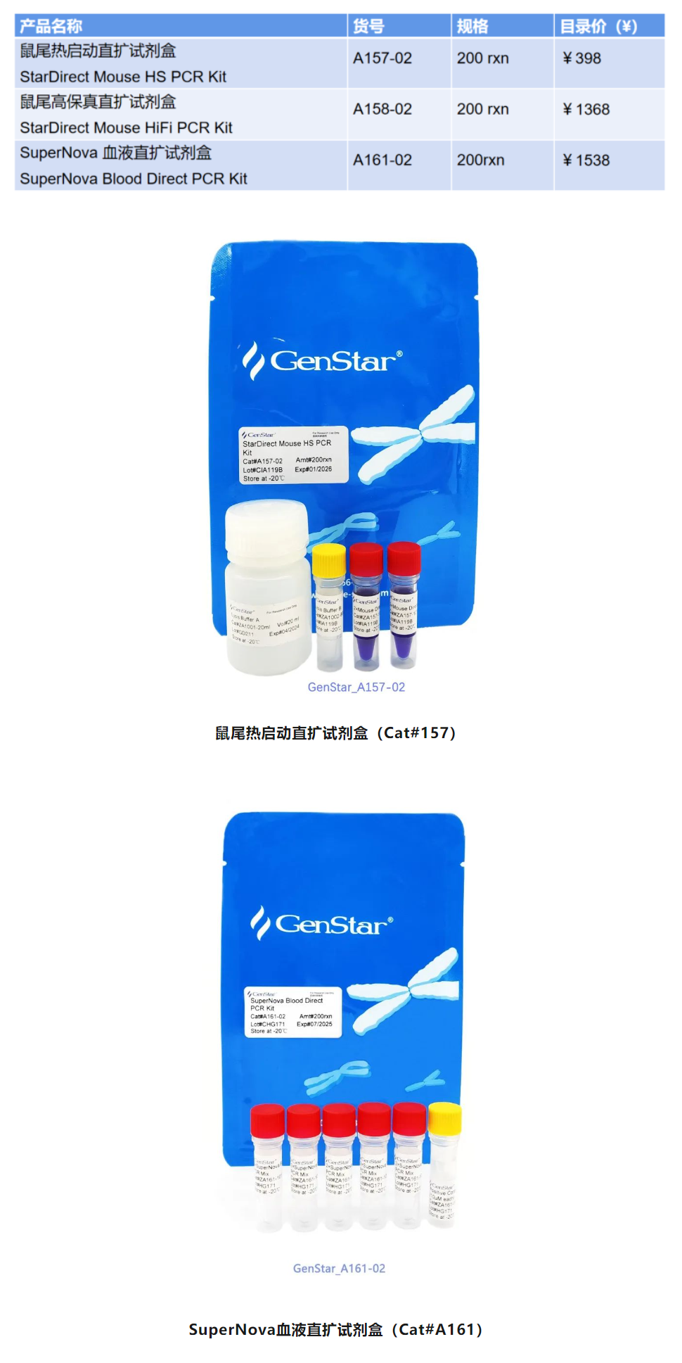 GenStar直擴(kuò)PCR系列為本次展會(huì)咨詢(xún)的明星產(chǎn)品,GenStar直擴(kuò)PCR系列產(chǎn)品包括鼠尾直擴(kuò)試劑盒和血液直擴(kuò)試劑盒。無(wú)需核酸提取,直接使用動(dòng)物或植物組織等即可進(jìn)行PCR反應(yīng)。省去了核酸提取環(huán)節(jié),不僅能節(jié)省時(shí)間,又能節(jié)省成本,為核酸擴(kuò)增和檢測(cè)帶來(lái)前所未有的便捷。